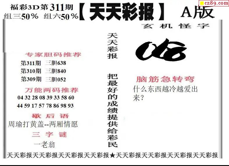 福彩3D2025311期天天彩报A版 天天彩报B版