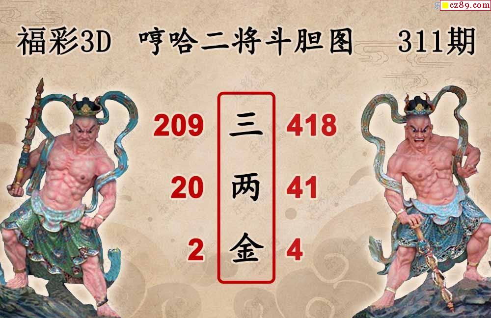 福彩3D2025311期 白鱼舟3D图谜哼哈二将斗胆图