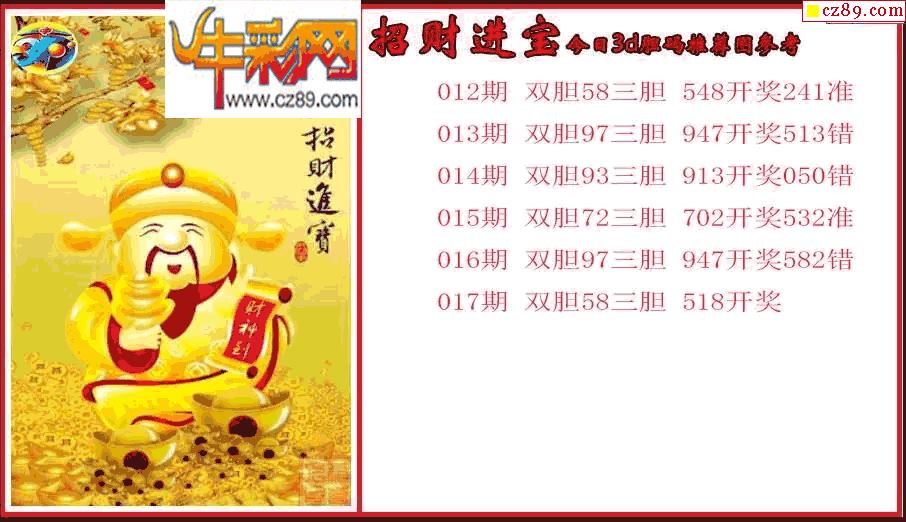 > 26年017期3d 招财进宝今日胆码推荐图参考
